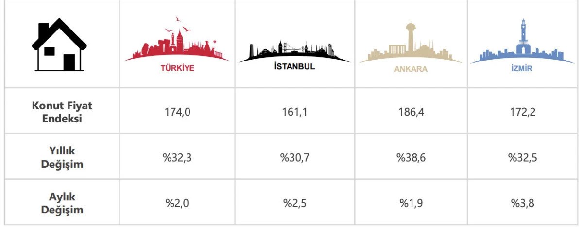 Ankara ve İzmir’le karşılaştırıldığında İstanbul’da konut fiyatlarının artış suratı daha düşük kaldı.